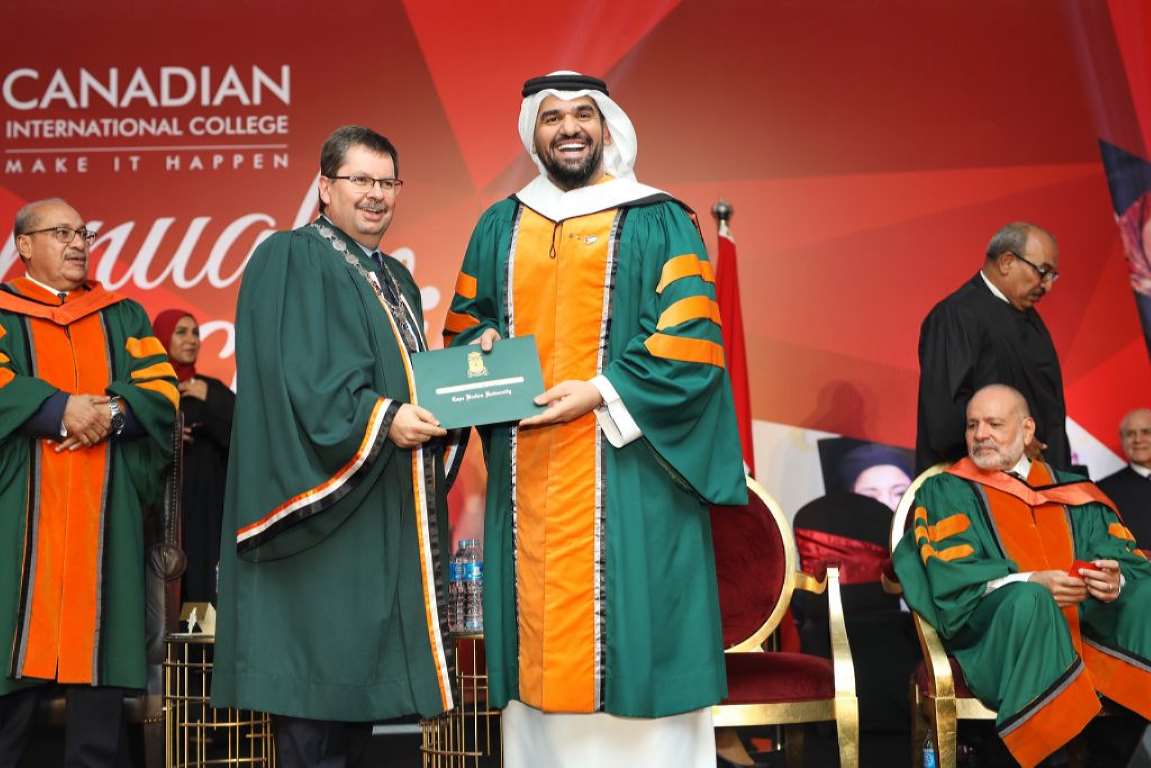 منحت الكلية الكندية الدولية CIC في جمهورية مصر العربية، الفنان الدكتور حسين الجسمي “السفير فوق العادة للنوايا الحسنة” شهادة الدكتوراه الفخرية،