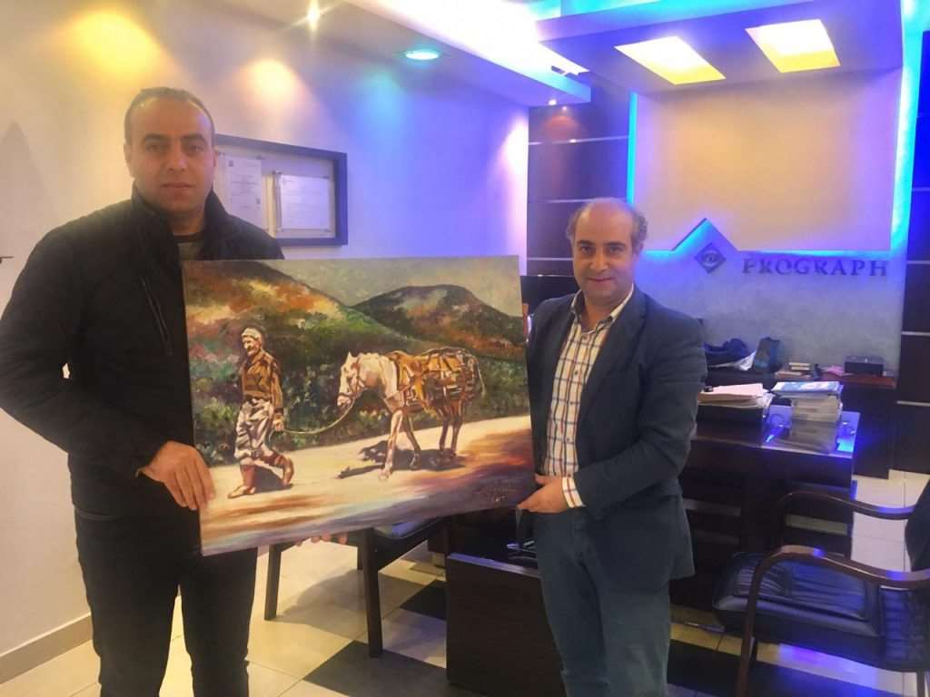لوحة زيتية يقدمها غاندي بوذياب لرجل الاعمال محمد حجازي