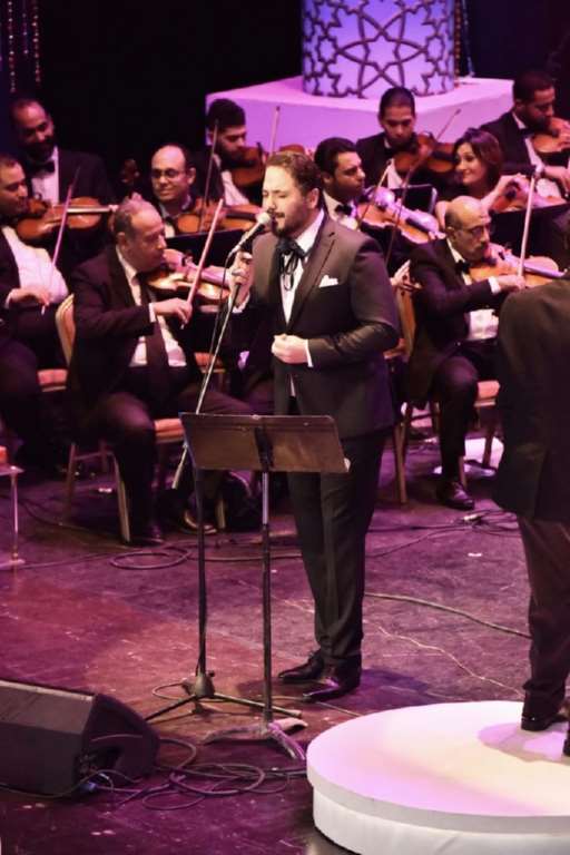 افتتح النجم رامي عياش ثالث ليالي مهرجان الموسيقى العربية على المسرح الكبير في الأوبرا المصرية بالنشيد الوطني لجمهورية مصر تبعها
