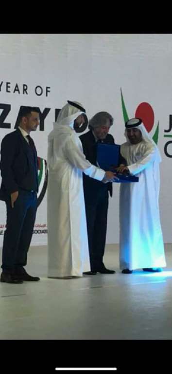 خاص الصدى -هبة موسى في إحتفالية عام زايد تم تكريم د.جمال فياض في دبي وذلك تقديراً لتاريخه وإنجازاته الاعلامية والفنية