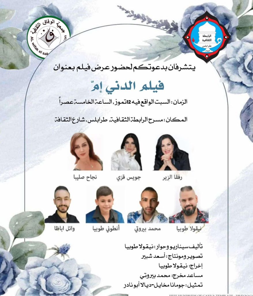 تستعد جمعية الوفاق الثقافية، بالتعاون مع الرابطة الثقافية في طرابلس، لعرض الفيلم اللبناني “الدني إمّ”، وذلك يوم السبت الواقع فيه