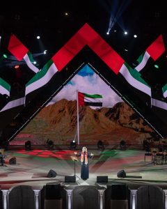 كما أشاد بدور إمارة الشارقة ومدرّج خورفكان في إحياء الاحتفالات الوطنية، وقدّمها سوياً بمشاركة الفنان حسين الجسمي.